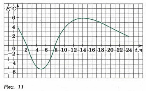 С помощью графика мы выяснили некоторые свойства функции Р = ƒ(t), где t — время суток в часах, а Р — температура воздуха в градусах Цельсия.