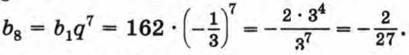 Пример 2. Найдем восьмой член геометрической прогрессии (bn), если b1 = 162 и b3 = 18.