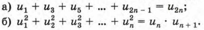 может быть вычислена по формуле 665. Докажите, что при любом натуральном n верно равенство 1 • 4 + 2 • 7 + 3 • 10 + ... + n (3n + 1) = n (n + 1)2. 666. Пусть (bn) — последовательность, в которой b1 = -3, bk + 1 = bk + 6k + 3. Докажите, что эту последовательность можно задать формулой bn = 3n2 - 6. 667. Докажите, что последовательность (аn), в которой а1 = -5, аk + 1 = аk + 10k + 5, можно задать формулой аn = 5n2 - 10. 668. Докажите, что разность 49n - 1 кратна 48 при любом натуральном n. 669. Пусть (un) — последовательность чисел Фибоначчи, т. е. u1 = 1, u2 = 1, un + 2 = un + un + 1 при n > 2. Докажите, что эта последовательность обладает следующим свойством: