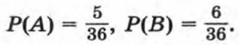 В каждой паре на первом месте записано число очков, выпавших на белом кубике, а на втором месте — число очков, выпавших на черном кубике. Указанные исходы испытания равновозможны. Общее число равновозможных исходов равно 36. Пусть событие А означает, что при бросании кубиков в сумме выпало 8 очков, а событие В означает, что в сумме выпало 7 очков. Для события А благоприятными являются 5 исходов: (2; 6), (3; 5), (4; 4), (5; 3), (6; 2). Для события В благоприятными являются б исходов: (1; 6), (2; 5), (3; 4), (4; 3), (5; 2), (6; 1). Отсюда