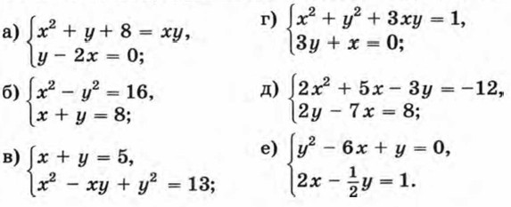 975. Не выполняя построения, выясните, пересекаются ли: а) парабола у = х2 - 6х + 8 и прямая х + у = 4;