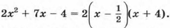 § 2. Квадратный трехчлен Разложение квадратного трехчлена на множители (продолжение)Пример 1. Разложим на множители квадратный трехчлен 2х2 + 7х - 4.