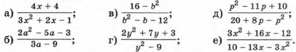 81. Можно ли разложить на множители квадратный трехчлен, коэффициенты которого — равные, отличные от нуля числа? 82. Покажите, что существует квадратный трехчлен, имеющий корни, коэффициенты которого — натуральные числа вида n, 2n, Зn (расположенные в произвольном порядке). Разложите этот трехчлен на множители. 83. Сократите дробь: