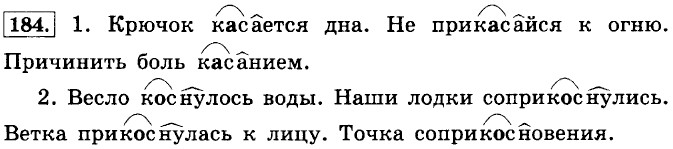 5 букв, 5 звуков Упр. 185 а) Касаюсь стены рукой. Коснитесь пола пальцами рук. Касание мяча о сетку. Прикосновение языка к зубам. — Прямое значение. б) Директор коснулся вопроса о дисциплине. Автор брошюры касается темы о воспитании силы воли. — Переносное значение. в) Это тебя не касается. Решение педсовета коснется всех учеников гимназии. — Переносное значение. Воспитания — сущ. I. Проблемы (какой?) воспитания.