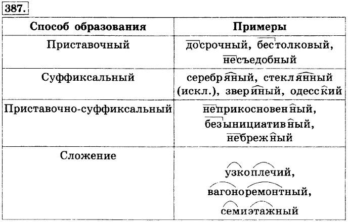 Упр. 388 Основная мысль текста: Надо беречь пригородные леса. Лес, расположенный вблизи большого города, страдает от вытаптывания. Порой в бору стоят одни лишь старые сосны. А внизу нет ни молодого деревца, ни зелёного мха, ни травы. И уж, конечно, не найдёшь здесь белого гриба. На тёмно-сером грунте, похожем на асфальт, утрамбованном человеческими ногами, не растёт ничего. Можно огораживать большие участки леса, предоставляя гуляющим дорожки, как в парке. «Скучно же так!» — восклицает иной турист из «дикарей». А весело ли гулять по аспидно-чёрному «лесному асфальту», на котором лишь жёлтая опавшая хвоя да обрывки бумаги и бутылочные осколки? Упр. 391 ХохломаДеревянные (относит.) ложки, хохломская (относит.) роспись, пламенная (относит.) хохлома, красно-золотые (относит.) изделия, старинное (качеств.) село, драгоценного (относит.) металла, алюминиевым (относит.) порошком, в горячую (качеств.) печь, серебряный (относит.) цвет. Мастерят, продавали, горят, сверкают, выточат, натирают, спекаются, становятся, за пределами, известна.
