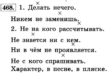 Упр. 467 Не́ с кем, ни во что́, не́ у кого, ни для чего́, ни от кого́, ни перед че́м. Не́ с кем словом перемолвиться, ни во что́ не ставил, ни для чего́ не сгодился, ни от кого́ не прятался, ни перед че́м не остановится.