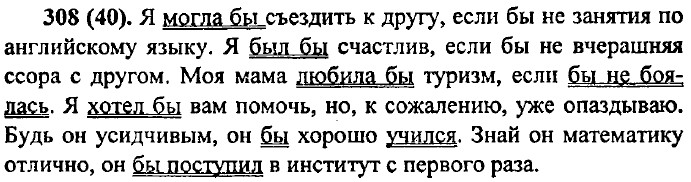 Упр. 306 (38). 1) сослагательное наклонение; 2) изъявительное и повелительное наклонение. Упр. 307 (39). Полить — полей, полейте; сеять — сей, сейте; везти — вези, везите; вести — веди, ведите; лечь — ляг, лягте; положить — положи, положите; класть — клади, кладите; поехать — поезжай, поезжайте; бриться — брейся, брейтесь. С помощью этих глаголов можно обратиться ко 2-му лицу.