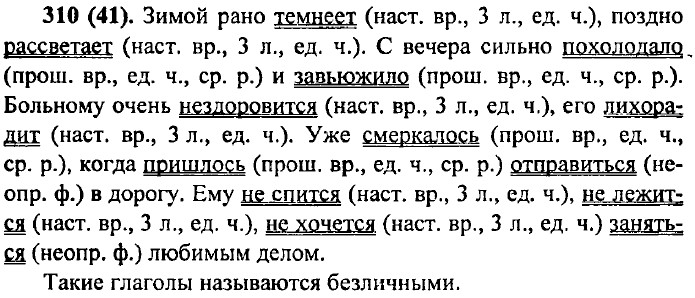 Упр. 311 (42). Зимой рано вечереет. Я просыпаюсь, когда на улице рассветает. К осени заметно холодает. С утра меня знобило. Послышался шум, вдали зазвенело. Наступила весна: пахнет растаявшим снегом, молодыми листочками, солнцем, свежестью.