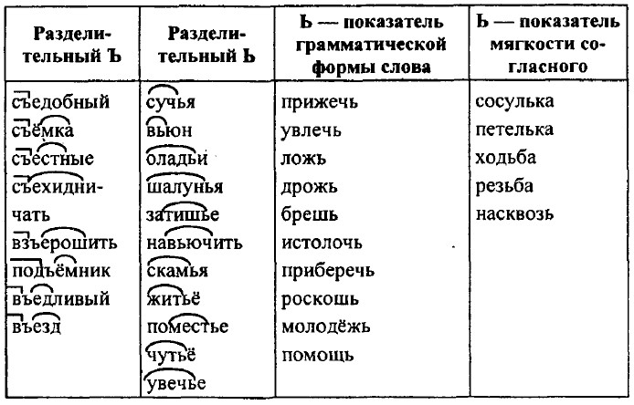 Правописание Буквы ь и ъУпр. 42 (79) 1. Ь и Ъ не обозначают звуков. 2. Ъ бывает только разделительным и употребляется после приставок перед буквами е, ё, ю, я. (четырехъярусный) Ь употребляется как: а) разделительный (соловьи); б) показатель грамматической формы (речь); в) обозначение мягкости согласного (зверь). 3. Ь употребляется в инфинитивах (мочь), частицах (лишь), наречиях (настежь).
