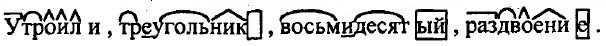 Имя числительное § 53. Употребление числительных в речиУпр. 623 (489). Столетие — столетний, тысячелетие — тысячелетний, тридцатилетие — тридцатилетний, пятиэтажка — пятиэтажный, трёхэтажка — трёхэтажный, десятиклассник, четырёхугольник — четырёхугольный. Упр. 624 (490). Семиметровый, двухграммовый, пятимиллиметровый, десятилитровый, двадцатидвухметровый, пятикопеечный, пятидесятирублёвый, тысячерублёвый, трёхместный, пятибалльный, односуточный, двухгодичный, шестисоткилометровый, четырёхдневный, тридцатипятикилограммовый, шестиструнный. Пятикопеечная монета, тысячерублёвая купюра, шестисоткилометровый путь, шестиструнная гитара. Упр. 625 (491). Пятитысячный посетитель, восьмидесятый километр шестисотый автомобиль, пятеро солдат. У троили (глагол) капитал, путешествовать втроём (наречие), семидесятилетний (прилаг.) юбилей, равнобедренный треугольник (сущ.), пятикратный (прилаг.) чемпион, тысячелетний (прилаг.) дуб, девяностолетний (прилаг.) ветеран, троичный (прилаг.) нерв, сорокакилометровая (прилаг.) трасса, сотня (сущ.) гектаров, столетие (сущ.) университета, раздвоение (сущ.) личности.