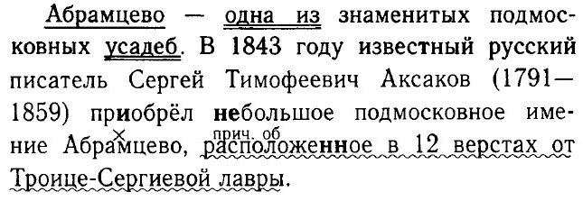 Вопросный план текста. 1. Какому знаменитому русскому писателю принадлежало имение Абрамцево? 2. Какие знаменитые люди посещали Абрамцево на протяжении пятнадцати лет? 3. Какое произведение читал Гоголь во время своего пребывания в имении? Лавра — название некоторых крупных православных мужских монастырей.