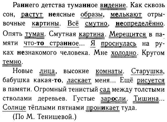 Назывные предложения: Раннего детства туманное видение. Опять туман. Смутная картина. Новые лица, высокие комнаты. Огромный тенистый сад между толстыми стволами деревьев. Густые заросли. Тишина... Упр. 182 — самостоятельно. Упр. 183 Диктант