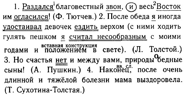 Это предложение повествовательное, невосклицательное. Грамматическая основа — увиделся (глагол) я (местоимение), значит, оно простое, двусоставное. В предложении есть второстепенные члены, поэтому оно распространённое. Предложение осложнено обращением Места немилые, хоть и родные и вводным словом Итак, которые не связаны грамматически с членами предложения. Упр. 396 — устно. Упр. 397 1. За все твои страдания и битвы