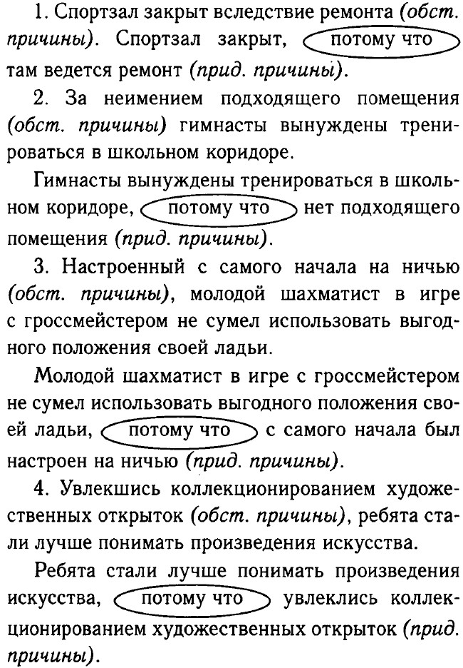 Для деловых бумаг характерны обстоятельства, выраженные производными предлогами с существительными или словосочетаниями (вследствие ремонта, за неимением подходящего помещения), а не придаточными предложениями. Упр. 133 Очарование подлинника не в силах передать репродукция«Это подлинник», — с уважением говорим мы про картину или скульптуру. Казалось бы, можно легко, листая журнал или книгу, где помещены репродукции работ художников и скульпторов, познакомиться с их творчеством. Но почему люди всё-таки стремятся в музеи и картинные галереи? Почему для того, чтобы посмотреть подлинник, они едут в другой город или даже страну? Эти вопросы очень важны для формирования правильного отношения к искусству. Художник не просто положил краски на холст, стараясь сделать это как можно красивее. Нет, в картину он всегда вкладывает своё отношение к тому, что изображает, свои переживания и мысли — словом, своё, неповторимое, потому что каждый видит мир по-своему. Встреча с произведением искусства — это также встреча с его создателем. Стоя перед картиной или скульптурой, мы стараемся понять её творца, разгадать то, что он хотел нам сказать. И чем больше мы смотрим на картину-подлинник, тем больше она говорит нам, тем больше раскрывается перед нами её красота и своеобразие. Рассказать обо всём этом, передать очарование подлинника не в силах самая совершенная копия. (По Е. Каменевой.) Упр. 134 Сочинение Почему люди стремятся увидеть именно подлинникЛюди стремятся увидеть именно подлинник, а не копию, потому что художник не просто наносит краски на холст, он выражает в картине своё отношение к изображаемому, свой мир, своё мировоззрение. Чем больше смотришь на картину-подлинник, тем больше она может рассказать, тем больше раскрывается её красота и неповторимость авторской манеры. Можно, конечно, познакомиться с произведениями искусства по репродукциям, помещённым в различных художественных альбомах, книгах и журналах, однако эти копии не смогут передать и доли того очарования, что есть в подлиннике. К подлинникам у всех людей особо трепетное и уважительное отношение, ведь именно подлинник может рассказать всё об авторе и его времени. И поэтому люди устремляются в музеи, картинные галереи, иногда для этого отправляясь в другой город. Упр. 135
