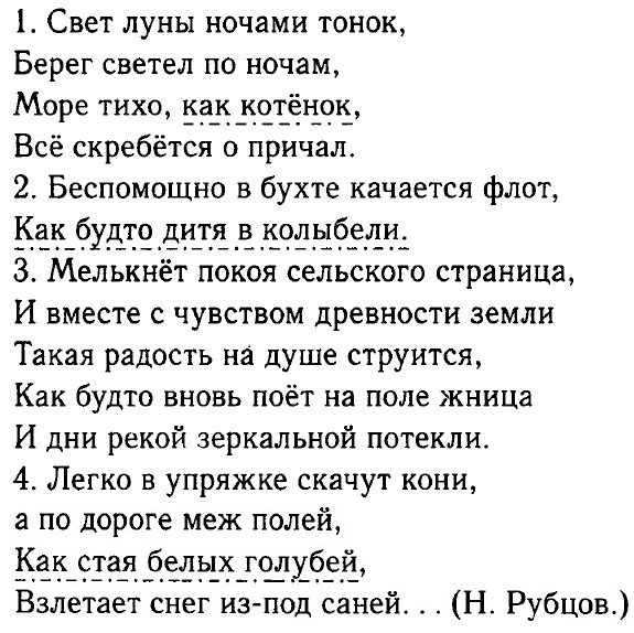 Повествовательное, невосклицательное, сложноподчинённое с придаточным определительным. Упр. 166 Сочинение С чего начинается РодинаМой дед часто вспоминал об окончании Великой Отечественной войны и делился со мной своими воспоминаниями. Он рассказывал следующее. «Я лежал в госпитале, когда в начале мая объявили: «Война закончилась!» Все, кто может, — по домам! Настал и мой черёд. И вот я еду... Думаю: как там мой родимый край? Наконец поезд подъезжает к станции, я с нетерпением соскакиваю с подножки ещё идущего поезда и бегу к маленькому вокзальчику, простой хибарке смотрителя станции. Быстрым шагом иду по дороге в родное село, потому что никто меня не встречает, мать с отцом я предупредить не успел — так спешил вернуться. Дорога шла через поля и перелески, я почти бежал, задыхаясь от счастья и волнения. Но вот показались внизу крыши домов родного села. Хоть дома были неухожены и частично разрушены, ведь была война, всё выглядело привычным, родным и милым моему сердцу. Я остановился на небольшом пригорке перед деревней, прислонился к светлой березке и задумался. Ну, вот и закончилась война! Теперь начнётся совсем другая, новая и спокойная для меня жизнь. Сколько предстоит сделать, сколько меня ждёт радости и новых мирных забот, как хорошо жить и как хорошо вновь вернуться в родной дом! «Милая берёзка, — мысленно обращался я к белоствольному дереву, — спасибо тебе, что дождалась, что выстояла и встретила меня первой!» А впереди — мирная жизнь, встреча с родными и друзьями, любовь, мирный труд, рождение детей и появление внуков — долгая-долгая счастливая жизнь среди белоствольных берёз, просторных полей и ароматного воздуха плодородной земли и разнотравья!» Дед рассказывал ещё, как его встретили мать с отцом, сколько было радости, что все живы- здоровы, как прибежали люди со всей деревни поприветствовать фронтовика, как застенчиво и трепетно поздоровалась с ним милая незнакомая девушка, которая потом и стала его женой. Каким счастливым было послевоенное время, сколько впереди было радости и мирных хлопот! Но день, когда он впервые после разлуки коснулся рукой белого ствола берёзы, остался в его памяти навсегда, эта картина первой встречи стояла перед его глазами всю оставшуюся жизнь.