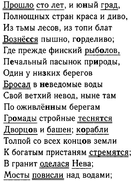 По типу текста это художественное описание, объектами которого являются различные жизненные явления и предметы. Узнаваемую панораму Петербурга позволила нарисовать сложная синтаксическая конструкция: сочетание сочинительной, подчинительной и бессоюзной связи простых предложений. Старославянизмы: град, полнощных, краса, блат, ветхий, оделася, порфироносная.