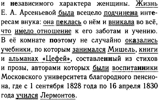 Упр. 217 ВведениеУж если о ком говорить из русских писателей, способном помочь нам в уяснении места, занимаемого Чайковским, то надо подниматься выше. Лермонтов, вот кто, раз придя на ум в сопоставлении с Чайковским, властно останавливает наше внимание. Основная частьПрежде всего аналогия бросается в глаза внешняя, ведь и для Лермонтова долго не могли найти подобающего ему места, и его долго нежно и пламенно любили, но по-настоящему не ценили... Это сейчас нам всем ясно, что, как ни многочисленна и ни разносоставна братия больших, великих, гениальных русских писателей, только за ним одним, рядом с Пушкиным, может быть признано право именоваться русским национальным поэтом. А Чайковский? Вдумаемся, всмотримся в окружающий нас русский духовный мир, попытаемся, как это ни трудно, объективно установить место, которое занимает в нём музыка Чайковского, и мы должны будем признать, что если кто рядом с Глинкою может притязать на звание русского национального композитора, то это Чайковский. ЗаключениеРусская литература, по давнему образному сравниванию Спасовича, возглавляется, подобно Кавказской цепи гор, двуглавым Эльбрусом Пушкина и Лермонтова, таким же двуглавым Эльбрусом Глинки и Чайковского возглавляется наша отечественная музыка. (К. Зайцев.)