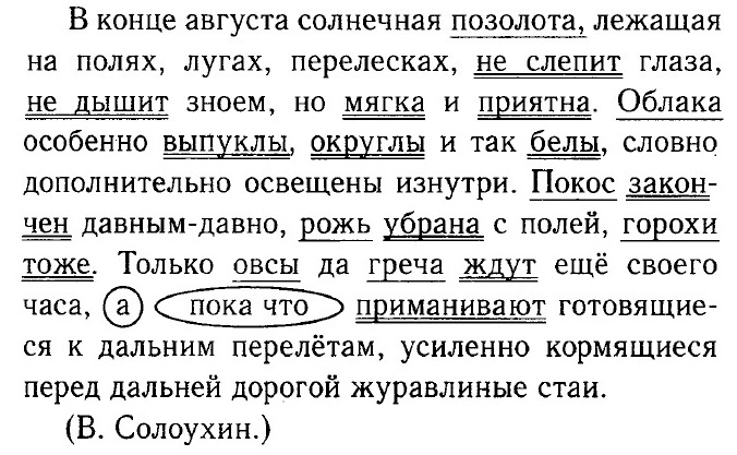 Овсы, греча и горохи — это культуры сельскохозяйственных растений. Слова овёс и горох употребляются во множественном числе, что характерно для просторечья или древнерусского языка. Греча (гречиха) — усеченное в просторечии слово. Это позволяет писателю воспроизвести на страницах своего произведения истинно народную речь, что очень органично при описании русской природы, полевых работ на просторах нашего отечества. Упр. 49 Никиту разбудили воробьи. Он проснулся и слушал, как медовым голосом, точно в дудку с водой, свистит иволга. Окно было раскрыто, в комнате пахло травой и свежестью, свет солнца затенён мокрой листвой. Налетел ветерок, и на подоконник упали капли росы. Из сада послышался голос Аркадия Ивановича: — Адмирал, скоро глаза продерёте? — Встаю! — крикнул Никита, и с минуту ещё полежал: до того было хорошо, проснувшись, слушать свист иволги, глядеть в окно на мокрые листья. (А. Н. Толстой.)