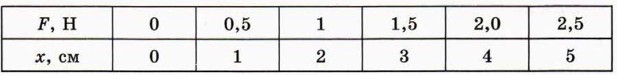 Глава 2. Динамика § 15. Силы упругостиПри решении задач этого параграфа массой пружин можно пренебречь. БАЗОВЫЙ УРОВЕНЬ 1. Чему равна сила упругости, действующая со стороны пружины жёсткостью 500 Н/м, если удлинение пружины равно 2 мм? 2. При растяжении пружины на 5 см возникает сила упругости 2 Н. Чему равна жёсткость пружины? 3. Груз массой 100 г равномерно поднимают с помощью пружины жёсткостью 100 Н/м. Насколько при этом растянута пружина? 4. Чтобы растянуть пружину на 2 см, надо приложить силу 30 Н. Какую силу надо приложить, чтобы растянуть ту же пружину на б см? 5. Жёсткость пружины 900 Н/м. Груз какой массы надо подвесить к пружине, чтобы она растянулась на 3 см? 6. В таблице приведены результаты измерений модуля F силы упругости пружины и модуля х её удлинения. Чему равна жёсткость пружины?