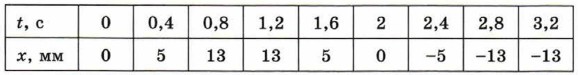 Глава 3. Колебания § 9. Свободные механические колебанияБАЗОВЫЙ УРОВЕНЬ 1. Маятник совершает 20 колебаний за 25 с. а) Чему равен период колебаний маятника? б) Чему равна частота колебаний маятника? 2. Материальная точка совершает колебания с частотой 20 Гц. Сколько полных колебаний совершит материальная точка за 5 с? 3. В таблице представлены данные о положении шарика, колеблющегося вдоль оси Ох, в различные моменты времени.