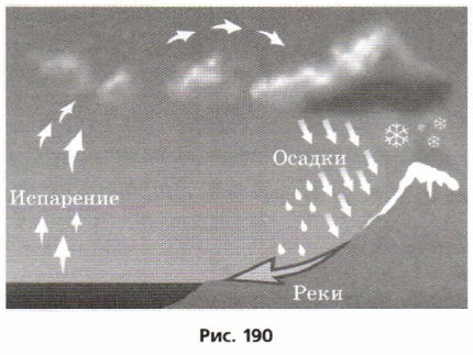 Испарение, конденсация, кипение Испарение, конденсация, кипение: Ответы, указания, решения7.12. Во влажном воздухе намного медленнее испаряется влага с поверхности тела, что приводит к его перегреву. 7.18.36 кДж. 7.19.115 кДж. 7.20. 5 кг. 7.21. 14 кг. 7.22. 300 г. 7.23. 400 г. 7.24. 240 кДж/кг. 7.25. 400 кДж/кг. 7.26. При конденсации невидимый пар превращается в видимые капельки воды. 7.30. Дело в том, что у лягушки кожа очень легко испаряет влагу. В сухой атмосфере кожа быстро обезвоживается, поэтому лягушка, если дело идет к теплу, сидит в воде. В сырую погоду, когда собирается дождь, она вылезает на поверхность и обезвоживание ей не грозит. 7.32. Распыление воды и взмахи пчел крыльями способствует интенсивному испарению воды и понижению температуры в улье. Когда температура в улье достигает нормы, рабочие пчелы вновь начинают собирать нектар. 7.33. Чтобы обеспечить охлаждение организма в жаркий день, собака широко открывает рот и высовывает язык. Испарение слюны с поверхности языка понижает температуру ее тела. 7.34. Белесая струйка, выходящая из носика чайника, — не пар, а туман (крошечные капельки воды, образовавшиеся в результате конденсации невидимого водяного пара). 7.37. Большое скопление людей повышает содержание водяного пара в комнате. При соприкосновении с охлажденными стеклами происходит конденсация этого пара. 7.38. Решение. В жаркие летние дни вода интенсивно испаряется с поверхности водоемов; воздух, содержащий водяные пары, нагревается от поверхности суши или воды, расширяется и устремляется вверх, при этом охлаждаясь. Водяные пары конденсируются, образуя облака (рис. 190).
