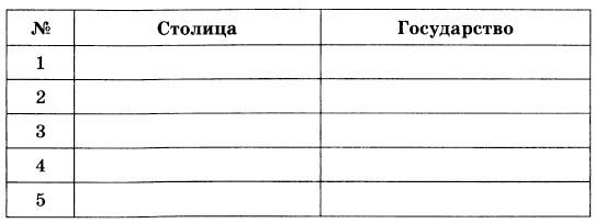 7. Выпишите из географического атласа в тетрадь названия 5 европейских государств в алфавитном порядке. Укажите столицу каждого государства.