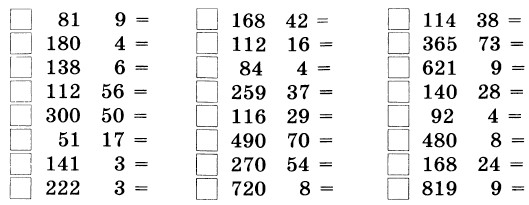 1. Можно ли утверждать, что для успешного решения математических задач достаточно знать все изученные формулы, а рассуждать логически не обязательно? Приведите пример. 2. Используете ли вы планы действий при обработке информации на уроках русского языка? Приведите примеры. 3. От чего зависит выбор формы представления плана действий? 4. Какие математические формулы должен знать человек, занимающийся ремонтом квартиры? 5. Нужны ли при решении житейских задач знания, получаемые вами в школе? Приведите примеры. 6. Решите следующие примеры самым удобным способом: 1 — с помощью таблицы умножения; 2 — подбором; 3 — разложением на удобные слагаемые. Укажите способ вычислений в квадратике рядом с каждым примером.