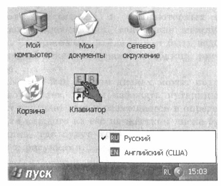 На Рабочем столе может быть много разных значков. Но, как правило, в левой части экрана всегда располагаются значки Мой компьютер, Корзина и Мои документы. Значок Мой компьютер обеспечивает доступ к различным устройствам компьютера. В Корзину отправляется «мусор» — всё то, что уже не нужно хранить в памяти компьютера. А значок Мои документы поможет быстро найти созданные вами рисунки и другие документы. Если ваш компьютер связан с другими компьютерами, то на Рабочем столе обязательно присутствует значок Сетевое окружение. Панель задач — серая полоска в нижней части Рабочего стола. На ней размещаются Часы и индикатор клавиатуры.