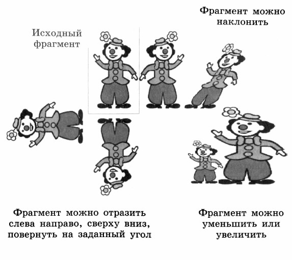 § 2.10. Компьютерная графика Графический редактор Paint (окончание)Работа с фрагментамиГрафический редактор Paint дает возможность удалить, переместить, скопировать, вырезать и вставить, а также изменить определённым образом любую часть изображения. Для этого нужно «указать», или выделить, нужную область (фрагмент). Для выделения фрагмента предназначены два инструмента: