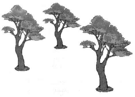8. Сохраните результат работы под именем Дуб в личной папке. Задание 3 1. Откройте файл Природа (Мои документы\5класс\Заготовки). 2. Выделите фрагмент, содержащий сосну. Копируйте выделенный фрагмент. 3. Выполните команду Создать меню Файл. 4. Вставьте фрагмент из буфера обмена (команда Вставить меню Правка). 5. Разместите на экране ещё две копии этого рисунка. 6. Измените с помощью маркеров размеры деревьев так, чтобы находящееся на переднем плане дерево было самым большим, а на заднем — самым маленьким. У вас должна получиться примерно такая картинка: