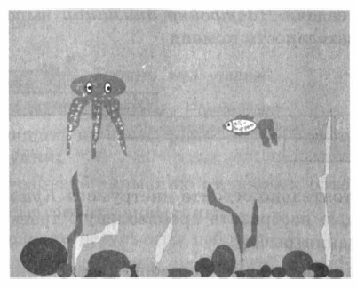 Глава 4. Компьютерный практикум Работа 14. Создаём анимацию на заданную темуЧасть I1. Запустите программу Paint. 2. Задайте рабочую область шириной 32 см и высотой 24 см. 3. Примените инструмент Заливка для создания синего фона. 4. Прокрутив картинку с помощью полос прокрутки, изобразите в нижней части несколько камней (инструмент Овал) и морских водорослей (инструмент Карандаш). Воспользуйтесь инструментом Заливка для их закраски. 5. Сохраните рисунок в личной папке под именем Фон. 6. Выполните команду Создать меню Файл. Задайте рабочую область шириной 5 см и высотой 3 см и нарисуйте в ней рыбку. Фон закрасьте тем же синим цветом. Сохраните рисунок в личной папке под именем Рыба1. 7. Задайте рабочую область шириной 3 см и высотой 5 см и нарисуйте в ней осьминога. Фон закрасьте тем же синим цветом. Сохраните рисунок в личной папке под именем Осьминог. Часть II для Microsoft PowerPoint 2000* Начиная с этого места, работа выполняется в зависимости от версии программного обеспечения. 8. Через пункт Программы главного меню запустите программу PowerPoint. Выберите пункт Создать презентацию, включите переключатель пустой презентации и щёлкните на кнопке ОК. В диалоговом окне Создать слайд выберите пустой слайд и щёлкните на кнопке ОК. 9. Вставьте в пустую презентацию рисунок Фон, созданный в программе Paint. Для этого выполните команду [Рисунок-Из файла] меню Вставка, найдите нужный файл, выделите его и щёлкните на кнопке Вставить. Фоновый рисунок появится в рабочем поле (на слайде) программы PowerPoint. 10. На этот же слайд поместите рисунки рыбки и осьминога. 11. Для настройки анимации щёлкните на изображении рыбки правой кнопкой мыши и в контекстном меню выберите пункт Настройка анимации. В открывшемся окне установите флажок на объекте анимации — рыбке. 12. На вкладке Порядок и время в группе Анимация установите переключатель на «автоматически, через 0 секунд после предыдущего события». 13. На вкладке Видоизменение в группе Выберите эффект и звук установите для рыбки эффект Выползание справа. В группе После анимации можно выбрать значение После анимации спрятать. 14. Действия 11-13 повторите для настройки параметров анимации осьминога, но эффект Выползание установите снизу. 15. Для просмотра анимации воспользуйтесь функциональной клавишей F5.