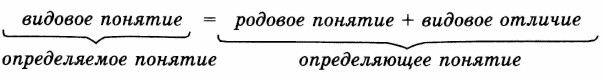 Очень часто определение строится через ближайший род и видовое отличие. Объем видового понятия более узок и полностью входит в объем родового понятия: