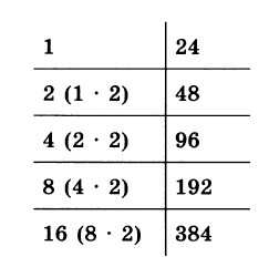 Величина числа не зависела от того, в каком порядке располагались составляющие его знаки: их можно было записывать сверху вниз, справа налево или вперемешку. Система счисления называется непозиционной, если в ней количественные значения символов, используе мых для записи чисел, не зависят от их положения (места, позиции) в коде числа. Система счисления Древнего Египта является непозиционной. Особую роль у египтян играло число 2 и его степени. Умножение и деление они проводили путем последовательного удвоения и сложения чисел. Выглядели такие расчеты довольно громоздко. Например, чтобы умножить 15 на 24, составляли следующую таблицу: