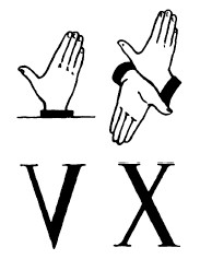 Глава 4. Материал для любознательных Римская система счисленияПримером непозиционной системы счисления, которая сохранилась до наших дней, может служить система счисления, применявшаяся более двух с половиной тысяч лет назад в Древнем Риме. В основе римской системы счисления лежат знаки I (один палец) для числа 1, V (раскрытая ладонь) для числа 5, X (две сложенные ладони) для 10, а также специальные знаки для обозначения чисел 50, 100, 500 и 1000.