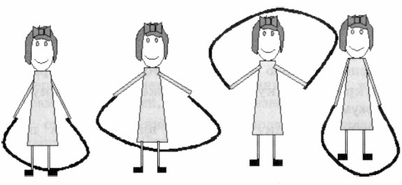 2. С помощью инструментов панели Рисование на четырех пустых слайдах изобразите девочку, прыгающую через скакалку. Это может выглядеть, например, так: