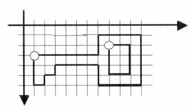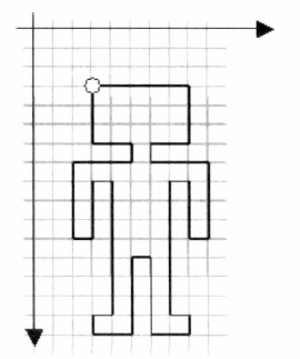 6. Наберите команду DRAW"bm50, 40"; с ее помощью исполнитель «прыгнет» во внутреннюю точку контура с координатами (50,40). 7. Наберите команду DRAW"p3, 6"; по ней исполнитель зальет внутреннюю область фигуры цветом 3. 8. Запустите набранную вами программу на выполнение. 9. Если при выполнении вашей программы компьютер обнаружит ошибки, то внесите исправления и запустите программу повторно. 10. Сохраните свою программу под именем Робот с помощью команды [Файл-Сохранитъ как...]. 11. Завершите работу со средой программирования QBasic. Задание 2 1. Запустите среду программирования QBasic. 2. Наберите команду, устанавливающую графический режим. 3. Наберите команду, устанавливающую цвет рисования 5. 4. Наберите команду, с помощью которой исполнитель «прыгнет» в точку с координатами (10,30). 5. Наберите командную строку, с помощью которой исполнитель DRAW, перемещаясь вверх, вниз, влево и вправо, изобразит на экране компьютера внешний контур следующей фигуры: