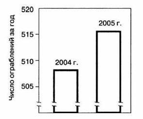 5. В одном из телевизионных ток-шоу ведущий продемонстрировал следующую диаграмму и сказал: «Диаграмма показывает, что по сравнению с 2004 годом в 2005 году резко возросло число ограблений».