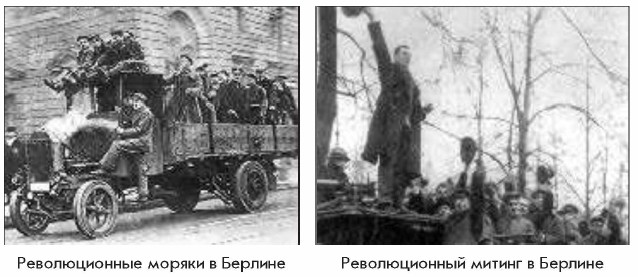 Революция в Германии началась после восстания 3 ноября 1918 года в г. Киле военных моряков, которых намеревались бросить в последний бессмысленный бой за кайзеровскую Германию. Моряки захватили власть, создали первый в Германии Совет и двинулись на Берлин. Их поддержали уставшие от войны рабочие. Вильгельм II бежал из страны. Уже 9 ноября рейхстаг провозгласил Германию республикой. 10 ноября было создано временное правительство — Совет народных уполномоченных во главе с социал-демократом Фридрихом Эбертом. В составе Совета преобладали представители двух социал-демократических партий — умеренной Социал-демократической партии Германии (СДПГ) и более радикальной Независимой социал-демократической партии Германии (НСДПГ).
