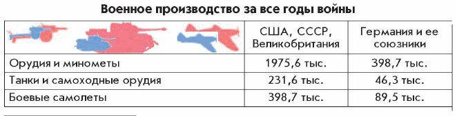 В течение 1942 года страны антигитлеровской коалиции наращивали свое военное производство и превзошли Германию и ее союзников как в количестве, так и в качестве военной техники. Британским военным морякам и летчикам удалось снизить потери своих транспортных конвоев от действий подводных лодок и авиации противника, что позволило снабдить армию всем необходимым. При этом до 1/3 военных материалов англичанам поставляли американцы. В США заводы активно переходили с выпуска холодильников и автомобилей на производство танков, самолетов, боевых кораблей, прочей техники и снаряжения. В результате полностью исчезла безработица, на заводы пришли тысячи женщин и афроамериканцев. Лучшие университеты США, исследовательские центры крупных компаний вели работы по совершенствованию имеющихся и созданию новых видов вооружения. С 1941 года ведущие ученые и инженеры были собраны в рамках секретного Манхэттенского проекта для разработки атомной бомбы (аналогичные работы велись также в фашистской Германии и в СССР). К середине 1942 года по закону о ленд-лизе американские морские конвои в кредит (с выплатой после войны) доставили в СССР сотни танков и самолетов, тысячи автомобилей, тонны продовольствия и стратегических материалов, без которых остановились бы предприятия, умерли бы от голода многие люди. Однако СССР самостоятельно обеспечивал себя основным вооружением, и оно было лучшего качества, чем у союзников (танк Т-34 и самолет-штурмовик Ил-2 были признаны лучшими в своих классах, а аналогов реактивных снарядов «катюша» не имела ни одна армия мира). Советское правительство требовало от союзников открытия второго фронта в Европе, чтобы отвлечь часть немецких сил от советско-германского фронта. Правительства Англии и США, связанные войной в Африке и на Тихом океане, всячески откладывали эту операцию.