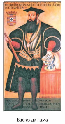 С каждым годом португальские корабли заходили всё дальше и дальше на юг, двигаясь вдоль африканского побережья. Каждая новая экспедиция привозила сообщения о невиданных животных и растениях, странных обычаях чернокожих жителей этого континента. Наконец в 1488 году кораблю Бартоломеу Диаша (ок. 1450—1500) удалось зайти дальше всех. Истощённая команда требовала поворачивать к родным берегам. Капитану стоило невероятных усилий уговорить моряков проплыть ещё немного. Через два дня флотилия подошла к мысу, за которым африканский берег поворачивал к северу. Перед моряками расстилался Индийский океан. Впоследствии этот мыс получил название «мыс Доброй Надежды» — надежды на то, что вскоре морской путь в Индию будет открыт. 8 июля 1497 года от берегов Португалии отплыли четыре корабля во главе с доверенным лицом короля дворянином Васко да Гамой. К экспедиции готовились очень серьёзно: подбирались люди, на которых можно было положиться, владевшие необходимыми знаниями; выверялись карты, приобретались приборы для навигации. В пути часто приходилось чинить потрёпанные ветром суда. От недостатка свежих фруктов и овощей моряки болели цингой. У них выпадали зубы, болели кости, многие умирали. Уже за мысом Доброй Надежды мореплаватели встретились с арабскими купцами. Не желая пускать соперников в Индию, арабы отказались дать португальцам лоцмана, знакомого с ветрами и течениями Индийского океана. Лишь случайно в одном из портов им удалось нанять арабского морехода.