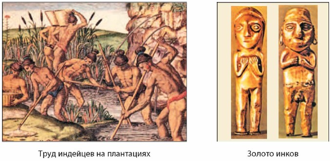 Население всех захваченных испанцами земель объявлялось подданными короля. Индейцы должны были платить подати в казну. Золотые статуи, кубки, серьги и кольца, сделанные индейскими мастерами, конкистадоры переплавляли в холодные золотые слитки с клеймом испанского короля. Одновременно в Мексике и Перу на месте ацтекских и инкских рудников испанцы организовали свою добычу золота и серебра. Каждый год здесь добывали тонны драгоценных металлов. Всё это вывозилось в портовые города, расположенные на американском побережье. Ежегодно отсюда в Испанию отправлялись две флотилии кораблей, гружённых драгоценным металлом, — так называемые «серебряный флот» и «золотой флот». Наконец испанские короли почувствовали, что колонии способны приносить доход не меньший, чем захваченные португальцами «острова пряностей».