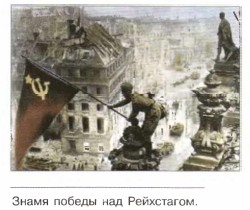 Поздним вечером 8 мая 1945 г. в предместье Берлина Карлсхорст в присутствии представителей Верховного командования вооруженных сил СССР, США, Великобритании, Франции и представителей германского командования был подписан Акт о безоговорочной капитуляции нацистской Германии. В Советском Союзе эту радостную весть из-за разницы во времени получили 9 мая 1945 г. Поэтому в Западной Европе днем окончания войны считается 8 мая, а в СССР — 9 мая. Великая Отечественная война советского народа победоносно завершилась. Победа означала, что Советский Союз достиг в этой войне своих политических целей. СССР не только сохранил свою свободу и независимость, но и обеспечил себе право участвовать в определении послевоенного миропорядка, в создании ООН, получил справедливые границы, право на репарации, стал одной из двух сверхдержав.