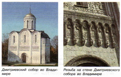 В конце XII века при Всеволоде Большое Гнездо недалеко от Успенского собора построили одноглавый Дмитриевский собор. Стены собора украсили каменной резьбой. Более 500 фигурок людей, птиц, зверей, фантастических существ, невиданных растений, а также орнамент вырезали на камне талантливые русские мастера. А так как скульптура не получила большого распространения в древнерусском искусстве (очень уж она напоминала языческих идолов), то рельефы Дмитриевского храма были уникальны, неповторимы. Внутри стены храма были расписаны фресками.