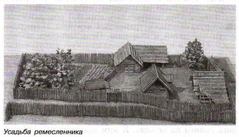 За городскими стенами в деревянной избе, врытой в землю и огороженной тыном (оградой), располагалась тюрьма. Недалеко от городских укреплений находились жилища стрельцов. Наконец, в городе были дворы землевладельцев, имевших поместья в городских окрестностях. Они строились на случай нередких тогда военных действий. В мирное время помещики в городе не жили, оставляя дома на попечение особых людей — дворников. Были ещё казённые (т. е. принадлежавшие государству) осадные избы, построенные для окрестного простого люда на случай военного времени. В больших городах размещались торговые дворы. В таком случае город становился не только административным, но и торговым центром.