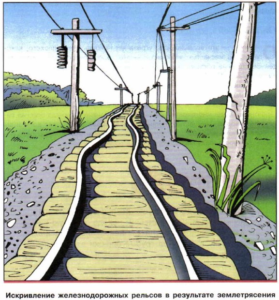Искривление железнодорожных рельсов в результате землетрясения