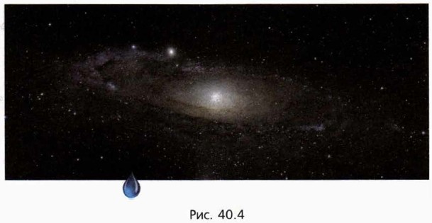 12. Оцените число молекул в капельке воды радиусом 1 мм. Сравните найденное число молекул с числом звёзд в галактике, содержащей сто миллиардов звёзд (рис. 40.4).