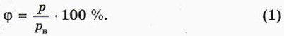 § 45. Влажность воздуха Относительная влажность (окончание)Вы нашли сейчас относительную влажность воздуха. Дадим её определение. Относительной влажностью воздуха φ называют выраженное в процентах отношение парциального давления р водяного пара к давлению рн насыщенного пара при той же температуре: