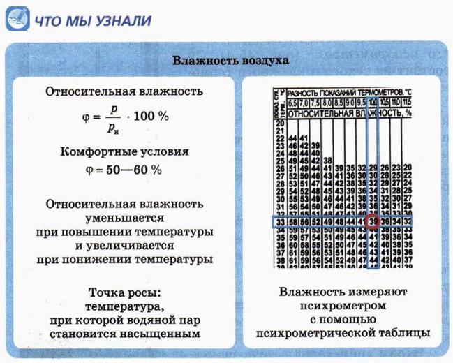 § 45. Влажность воздуха Дополнительные вопросы и задания к § 45. Влажность воздуха