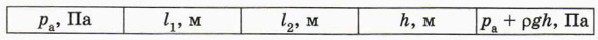 Если поднять конец трубки с воронкой, то давление воздуха под пробкой увеличится и станет равным р2 = рa + ρgh, где ρ — плотность воды, h — разность уровней воды в воронке и стеклянной трубке. Конечную высоту столба воздуха обозначим l2. Тогда конечный объём воздуха в трубке V2 = l2S. Вследствие теплообмена с окружающим воздухом температуру воздуха в стеклянной трубке можно считать постоянной. Поэтому согласно закону Бойля — Мариотта paV1 = (pa + ρgk)V2, откуда pal1 = (pa + ρgk)l2 Это соотношение и проверяется в данной работе. Ход работы 1. Определите по барометру-анероиду1 атмосферное давление pa. Результат (в паскалях) запишите в таблицу, заголовок которой приведён ниже. 1 Если в классе нет барометра-анероида, можно принять значение атмосферного давления равным нормальному атмосферному давлению (105 Па).