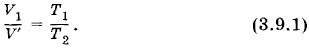Применяя закон Бойля—Мариотта (3.5.2) для изотермического процесса, получим p1V'=p2V2. (3.9.2) Выразим из уравнения (3.9.1) V':